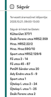 A balesetek megelőzése érdekében felhívju figyelmét, hogy az áramszünet