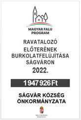 Projekt neve: Ravatalozó előterének burkolatfelújításaKedvezményezett neve: Ságvár Község ÖnkormányzataProjekt azonosító: 3365860216Támogatás összege: 1.947.926,-FtA támogatás mértéke: 100%