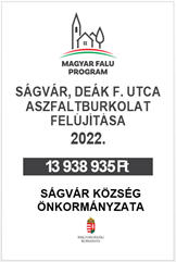 Projekt neve: Deák Ferenc u. burkolatfelújításaKedvezményezett neve: Ságvár Község ÖnkormányzataProjekt azonosító: 3346389886Támogatás összege: 13.938.935,-FtA támogatás mértéke: 100%