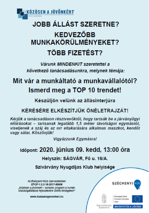 A „Közösen a jövőnkért” projekt keretében igénybe vehető